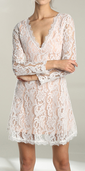 Styled with long sleeve,deep v-neck and a relaxed-fit silhouette,this delicate dress can make you look effortless