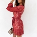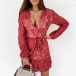 When you have this dress in your team,you don't need to worry about what to wear for your night dating and weekend gatherings. Comes with a bright and eye-catching red tone,with long sleeve,deep v-neck and a fit silhouette,this dress can showcase your slender figure as well as enhance your charming femininity.