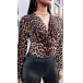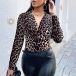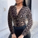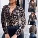 Sexy Deep V-neck Long Sleeve Leopard Printed Twisted T-shirt