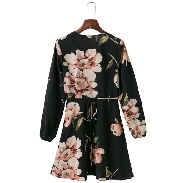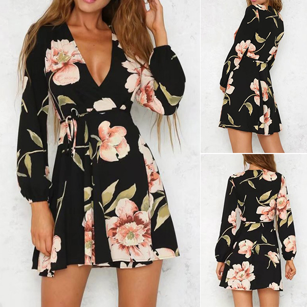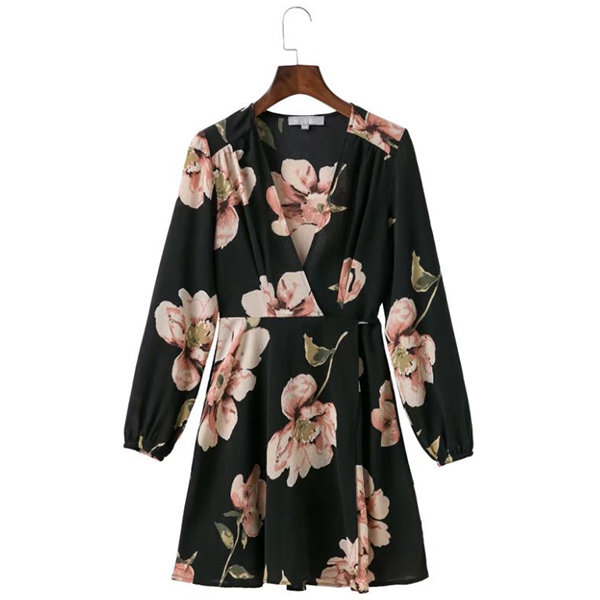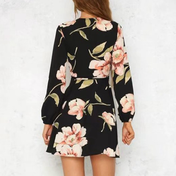 with this dress! Boasts romantic and vibrant floral print,accompanied with long sleeve and deep v-neck design,