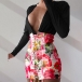 Sexy Deep V-neck Long Sleeve Printed Spliced Hem Lace-up Dress