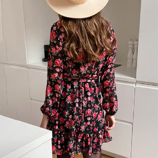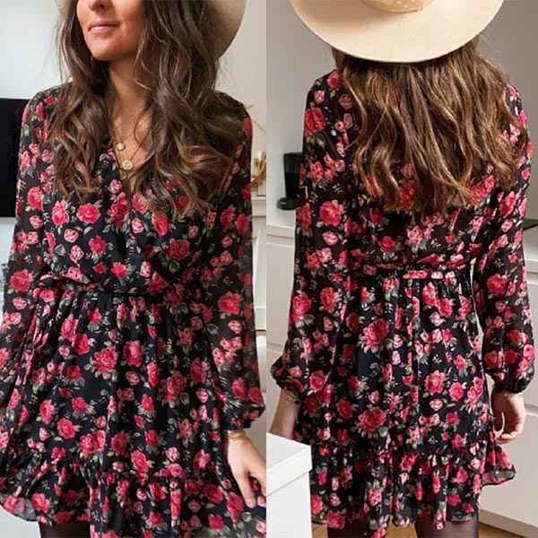 You can look effortlessly charming and beautiful in this printed dress. It boasts vibrant floral print details,with long sleeve,v-neck and ruffle hem design,this piece definitely can enhance your feminine appeal. For your night dating and weekend out,this dress can be your perfect solution.