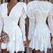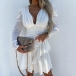 Sexy Deep V-neck Long Sleeve Ruffle Hem Solid Color Dress