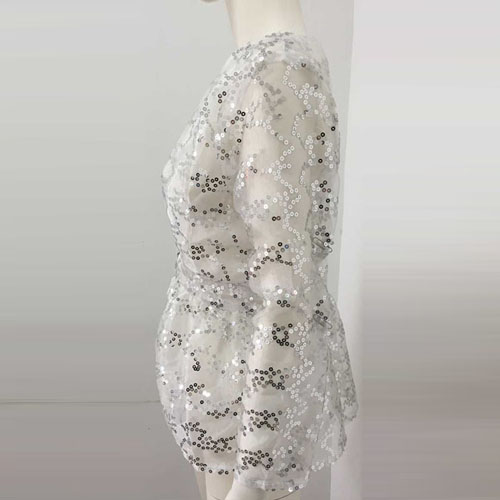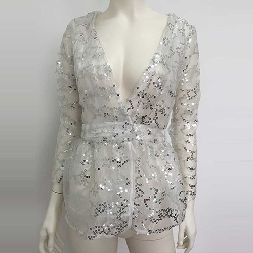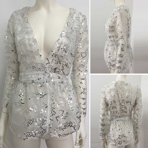 deep v-neck design. And its sequin spliced design makes it more sparkle and charming. Adding your
