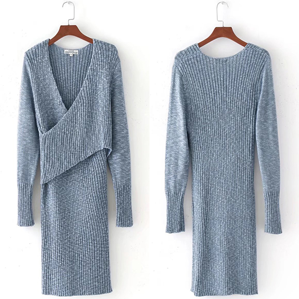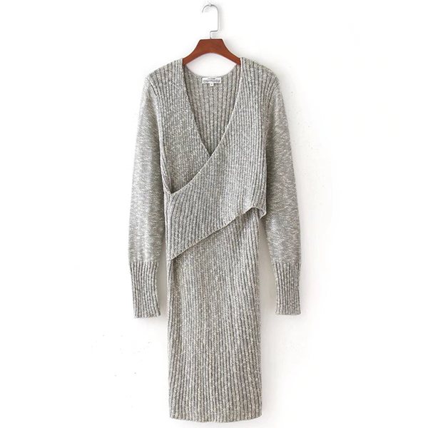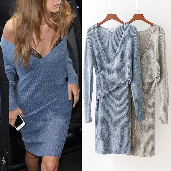 Wanna showcase your charming curve and sexy style? Then you can slip into this knit dress. Its deep v-neck design gives