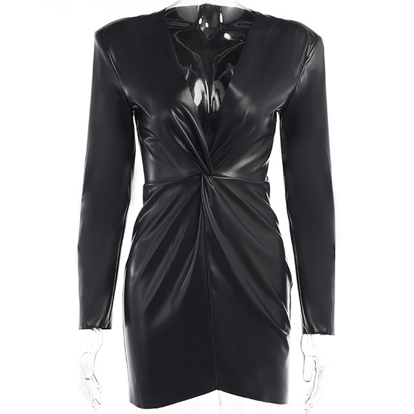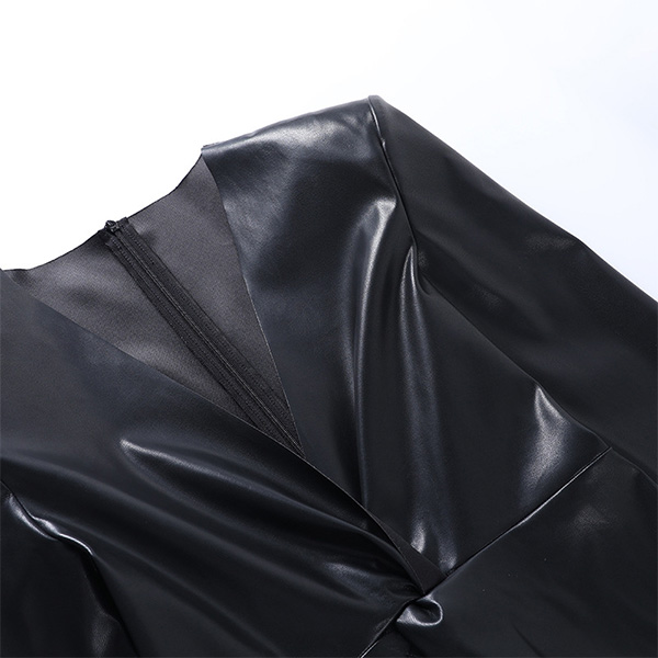 Combines of sexy and alluring vibes,this PU leather dress is a good weapon to express your beauty and charm. The deep v-neck and twisted design are the highlights,which can help you catch more eyes. And the fit silhouette design can showcase your slender figure. No matter when and where you are,you can easily be the focus in this little stunner.