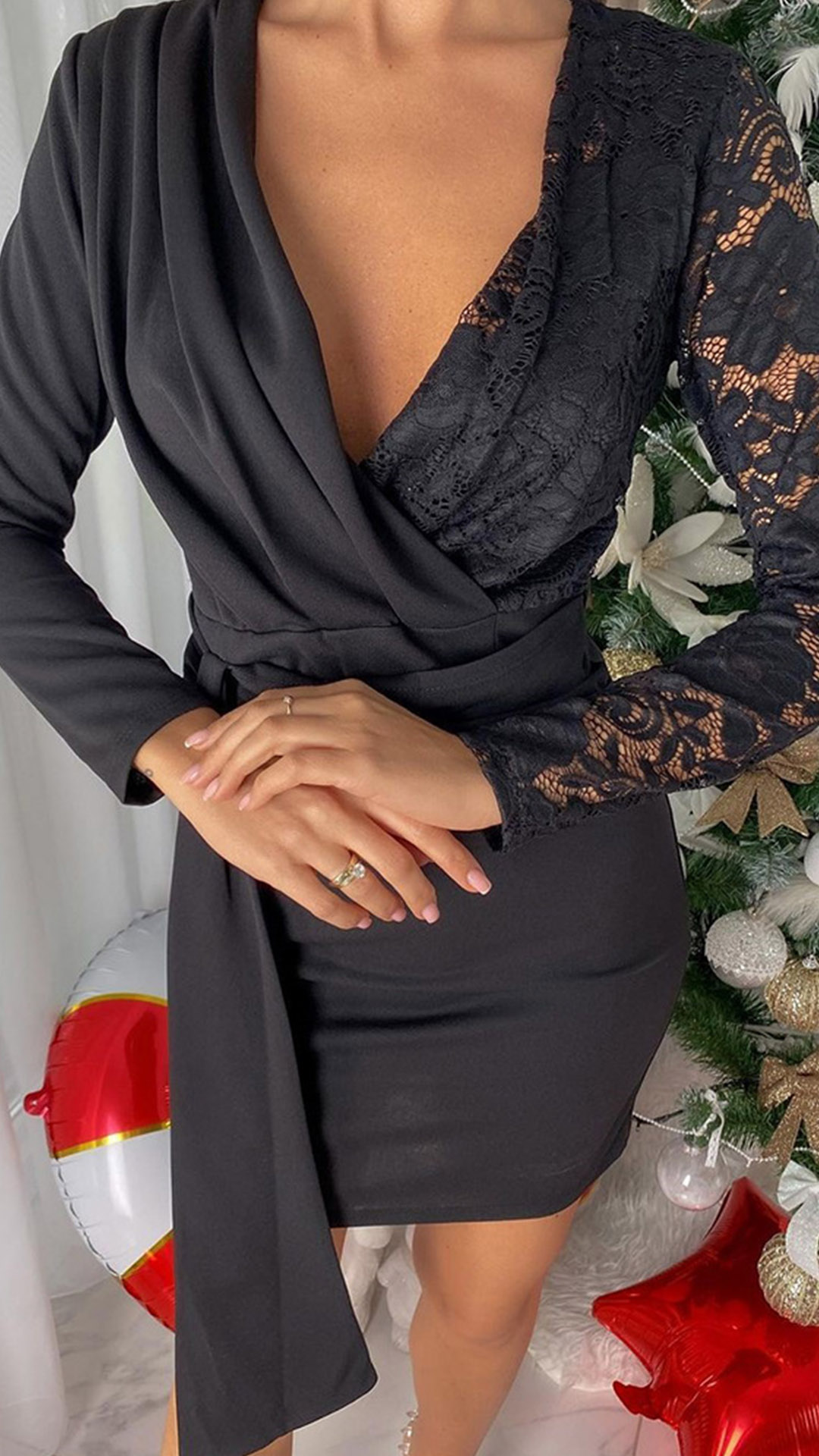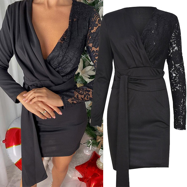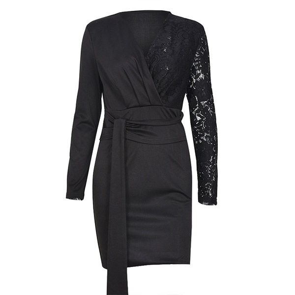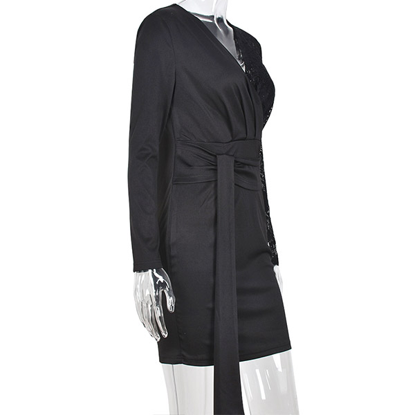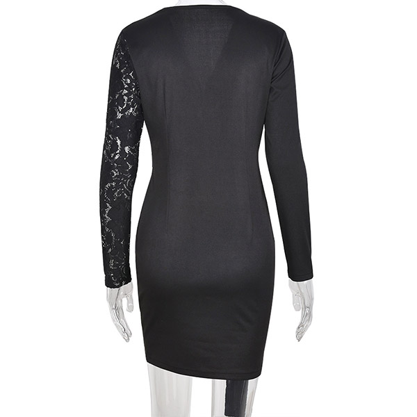 Sexy Deep V-neck Long Sleeve Slim Fit Lace Spliced Irregular