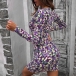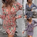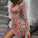 Sexy Deep V-neck Long Sleeve Slim Fit Printed Dress