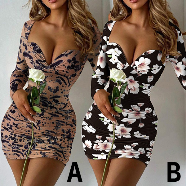 This little stunner would be your secret weapon to flaunt off your seductive curve as well as your alluring side. Finished with long sleeve,deep v-neck and a tight silhouette,this dress would exude your flirty and feminine side,while the eye-catching printed details will help you catch more eyes. So for your night events,this dress can be your wise choice.