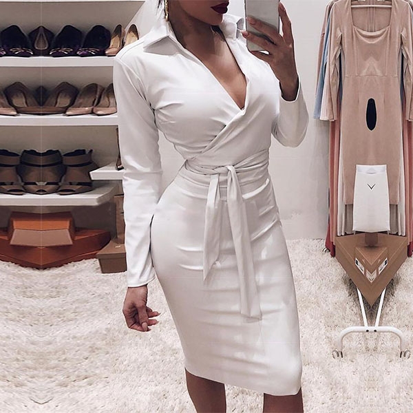 dress boats a fit silhouette,which can better highlight your perfect curve,while the deep v-neck design