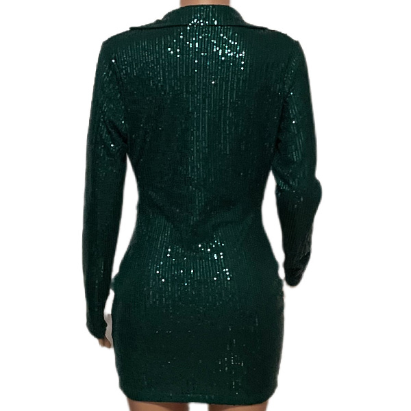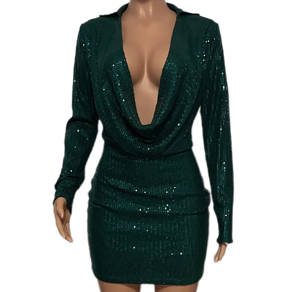 Sexy Deep V-neck Long Sleeve Slim Fit Sequin Party Dress