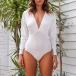 Sexy Deep V-neck Long Sleeve Solid Color Bodysuit