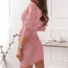 Sexy Deep V-neck Long Sleeve Solid Color Irregular Hem Slim Fit Dress