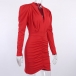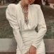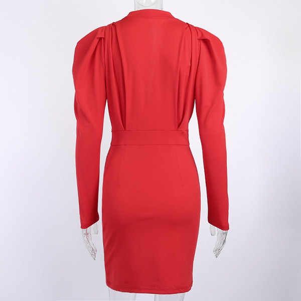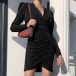 Sexy Deep V-neck Long Sleeve Solid Color Irregular Hem Slim Fit Dress