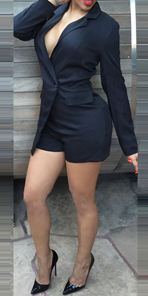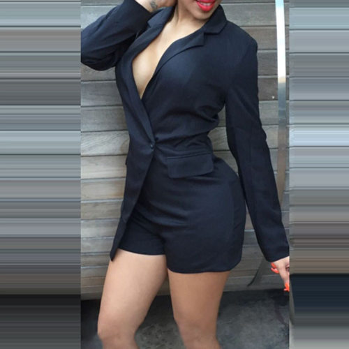 This romper features mysterious and flattering black color,outfitted with long sleeve,