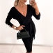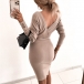 Sexy Deep V-neck Long Sleeve Solid Color Tie-belt Slim Fit Dress