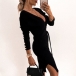When you wanna exude your charming feminine appeal,then you can just throw yourself into this dress. The deep v-neck design can make you look more alluring. Finished with long sleeve,tie-belt and a fit silhouette,this dress also can portray your perfect and seductive curve. So why not have a try it?