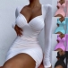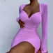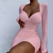 Sexy Deep V-neck Long Sleeve Solid Color Tight Dress