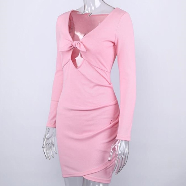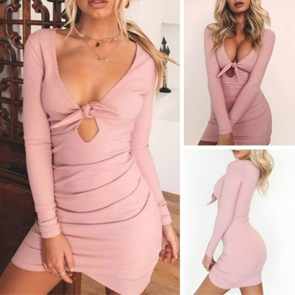 piece is a wise choice. Comes with a sweet pink tone,the deep v-neck design can offer you a sexy