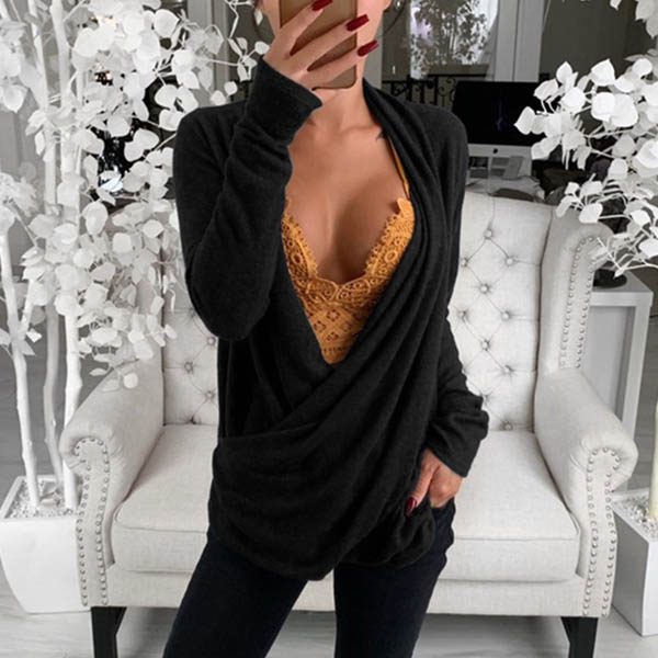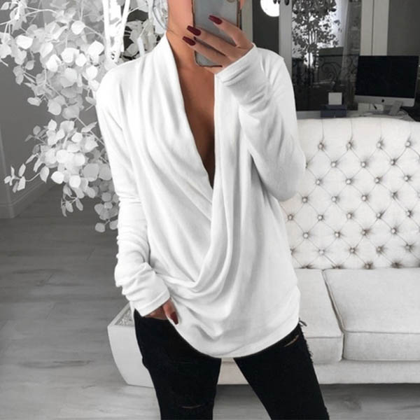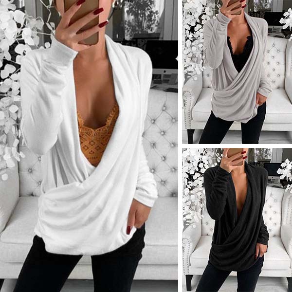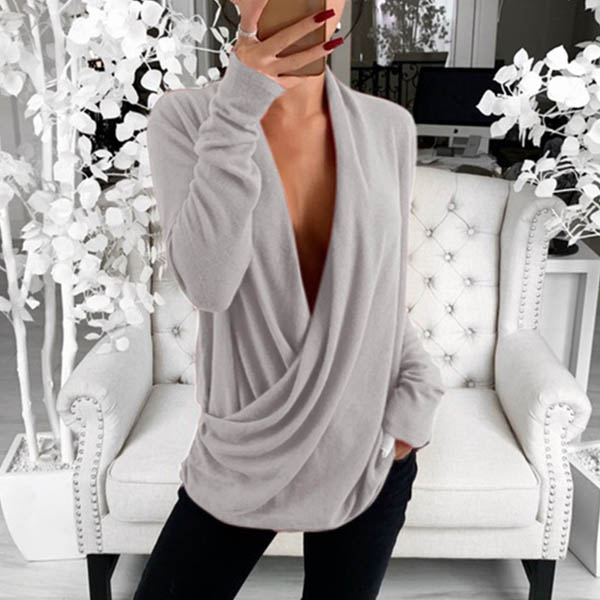 Wanna update your style? Then you can have a try this top! It boasts a solid color,the deep v-neck design not only can flaunt off your seductive cleavage,but also gives you the chance to showcase your stunning necklace. You can add a bandeau top underneath if you feel it is too sexy.