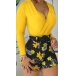 Don't know how to match? Then this two-piece set would be your perfect solution. It consists of a long sleeve v0neck t-shirt and a high waist printed shorts,this two-piece set is sure to portray your style and charm. You can trust in this two-piece set to have a wonderful day!