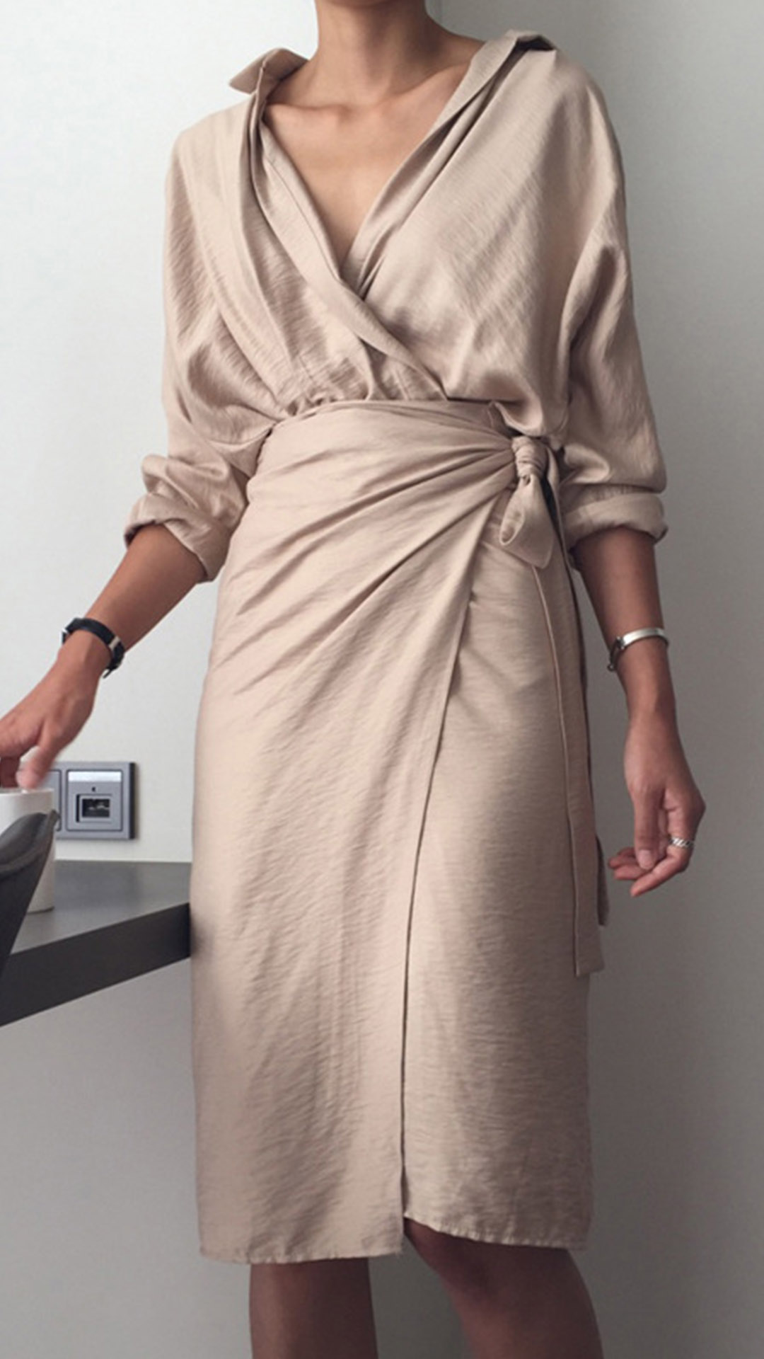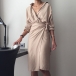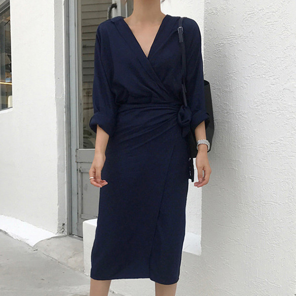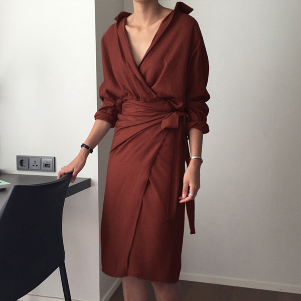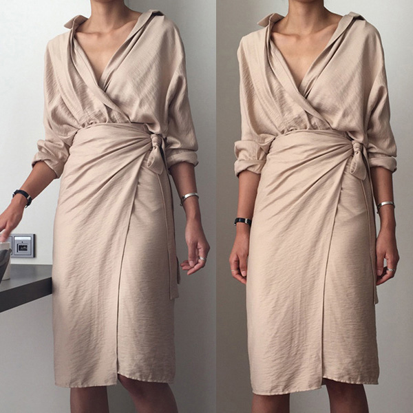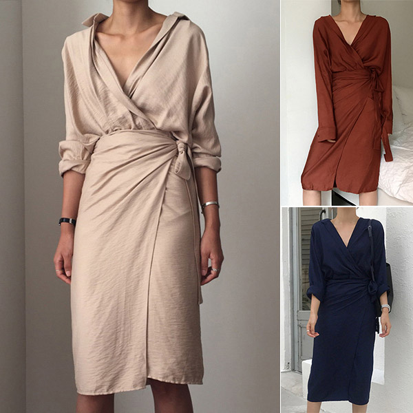 When you wanna give your image an instant boost,then you can throw yourself into this dress. Solid color style,the deep v-neck design can enhance your feminine appeal,while the tie-belt design will better showcase your slender figure. Dress it up with your sexy heels,you can look charming and beautiful enough!
