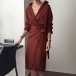 Sexy Deep V-neck Long Sleeve Tie-bely Slim Fit Dress