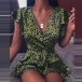 Sexy Deep V-neck Lotus Sleeve Leopard Printed Dress