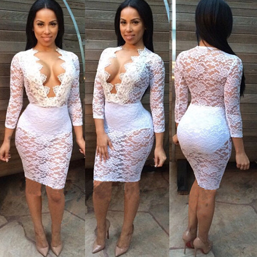 If you are bold enough,you can try this super sexy lace dress to draw their attention. See-through style,