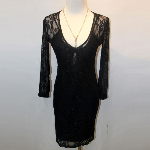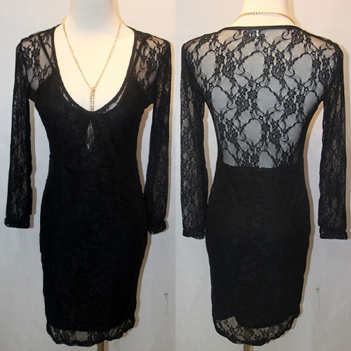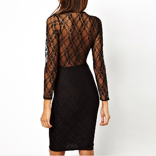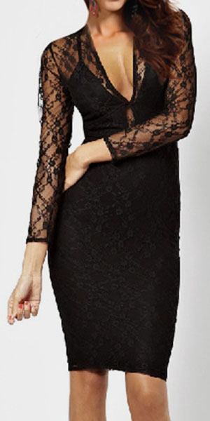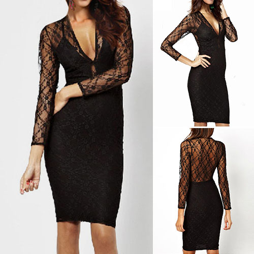 Its see-through lace spliced and deep v-neck design make this dress look so sexy