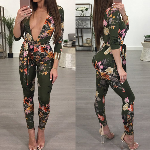 charming figure line. The perfect touch is the flower pattern brings vitality to the jumpsuit, which let your whole outfits