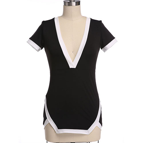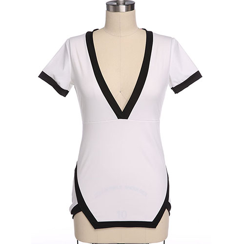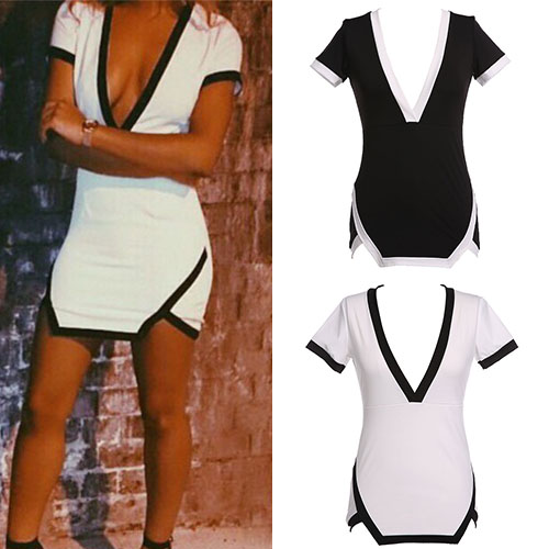 and your fresh sense of style. Contrast color style,with a deep v-neckline and an irregular hemline.