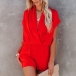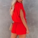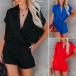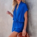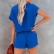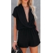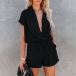 Sexy Deep V-neck Short Sleeve Elastic Waist Solid Color Romper