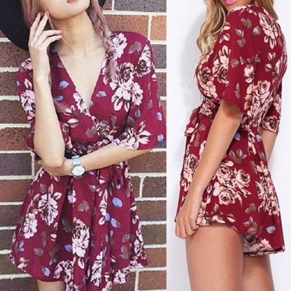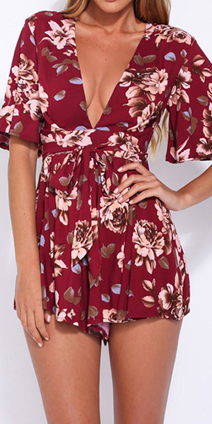 Summer style looks a lot like this short sleeve romper! Boasting a vibrant floral print and a v-neckline,