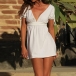 Solid color style,with short sleeve,deep v-neck and high waist design,delicate and sexy. Summer