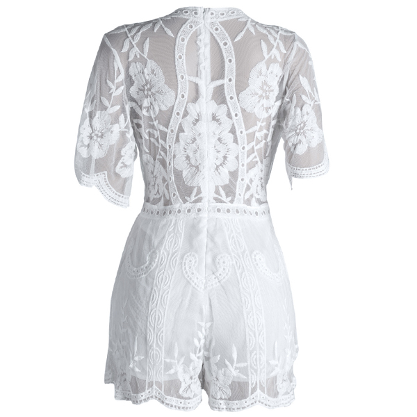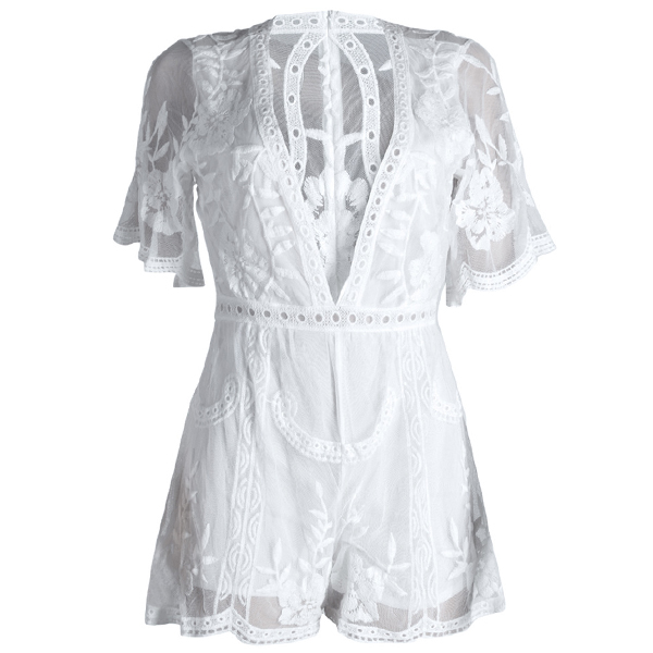 Exude your female charm and sultry style through this lace romper! It is styled with short sleeve,high waist and deep v-neck design,