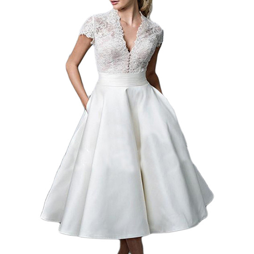 Then we will suggest you this piece. Lace spliced style,designed with short sleeve,deep v-neck and high waistline,