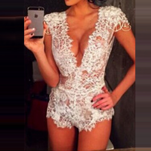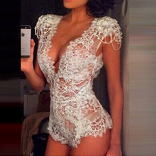 with deep v-neck, short sleeve and hollow out design, this creation is a big explosion of your sheer feminine charm.