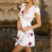 perfect and delicate details. Boasts vibrant floral print,with short sleeve,deep v-neck and a clean silhouette,this dress can