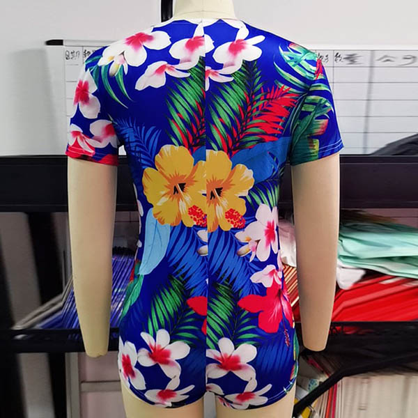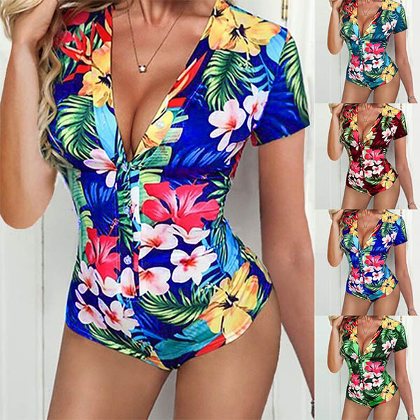 You are sure to catch more eyes when you don this short sleeve romper. The colorful printed details make this look so eye-catching,while the deep v-neck design can easily exude your flirty and feminine vibes. The fit silhouette design also can showcase your perfect figure. You can just slip into this piece to update your style.