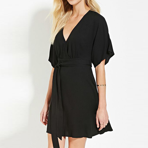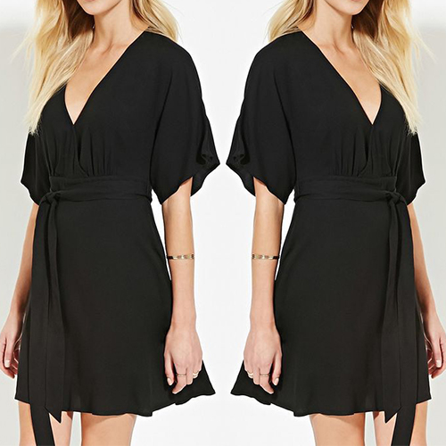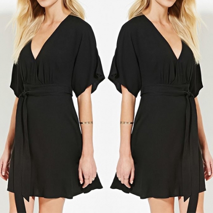 with short sleeve and a deep v-neckline,cozy yet sexy. Waist part with lace-up design makes this