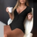 Sexy Deep V-neck Short Sleeve Solid Color Slim Fit Romper