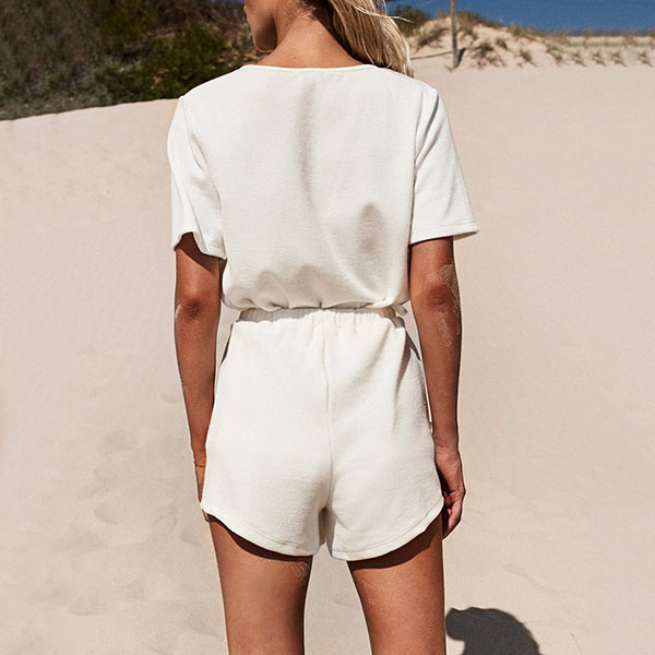 deep v-neck t-shirt and a high waist shorts,crafted from soft and breathable fabric,this two-piece set is sure to give you a