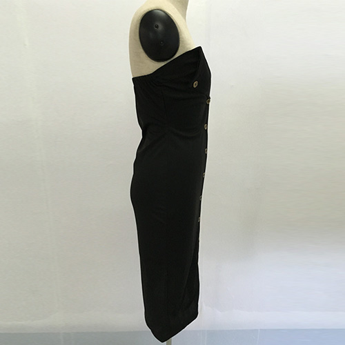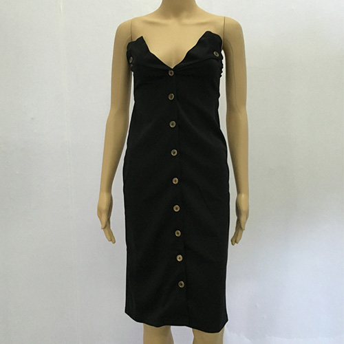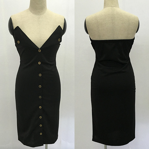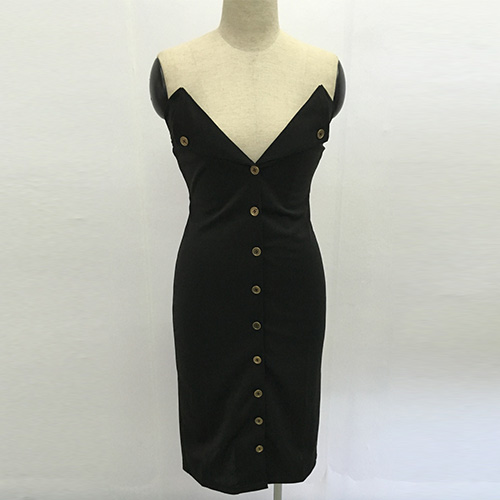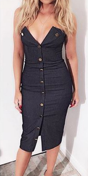 Designed with a deep v-neckline,single-breasted and a fit silhouette,this dress is perfect for night events.