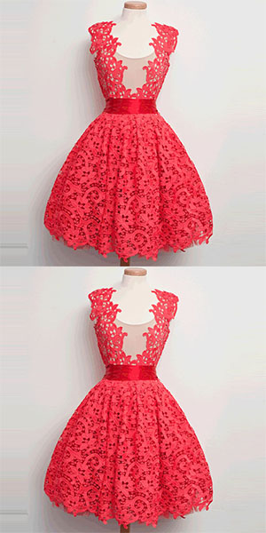 Hollow out lace design brings timeless elegance and sexy to this red lace dress.