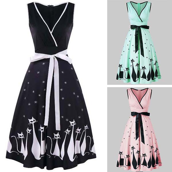 If you are looking for a proper dress for your dinner dates and weekend gatherings,you can just make your eyes focused on this sleeveless printed dress. The deep v-neck design can lend you a dash of sexy and feminine vibes,while the high waist with bow-knot waist strap design will make this piece look more attractive. You can trust in this dress to give you a sexy and sassy look!