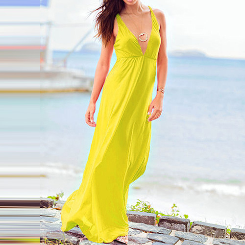 Sexy Deep V-neck Sleeveless Solid Color Beach Maxi Dress