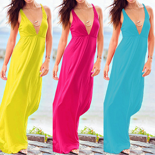 appear instantly. Solid color style,with sleeveless,deep v-neckline and a maxi length,