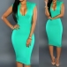 a solid color,with sleeveless,deep v-neckline and a bodycon silhouette,this sultry piece is perfect