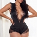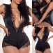 Sexy Deep V-neck Sleeveless Solid Color Slim Fit Lace Spliced Romper